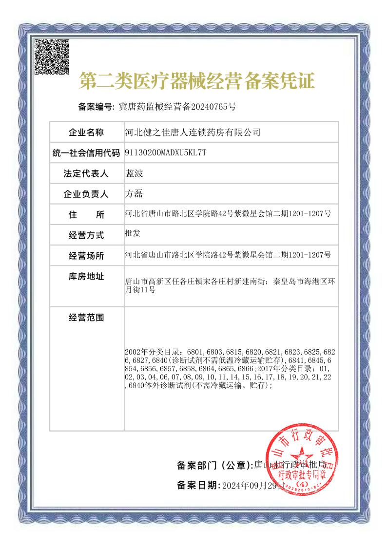河北健之佳唐人药房连锁有限公司原身河北唐人医药(以下简称“健之佳唐人医药”)是健之佳医药连锁集团股份有限公司的全资子公司。健之佳唐人医药历经20多年的发展,已成为唐秦地区受百姓信任的药店连锁品牌,目前在河北省唐山市、秦皇岛市地区拥有500多家直营连锁店,覆盖唐秦每个县区,每天服务3万多人次,公司员工2000余人,2个配送中心。